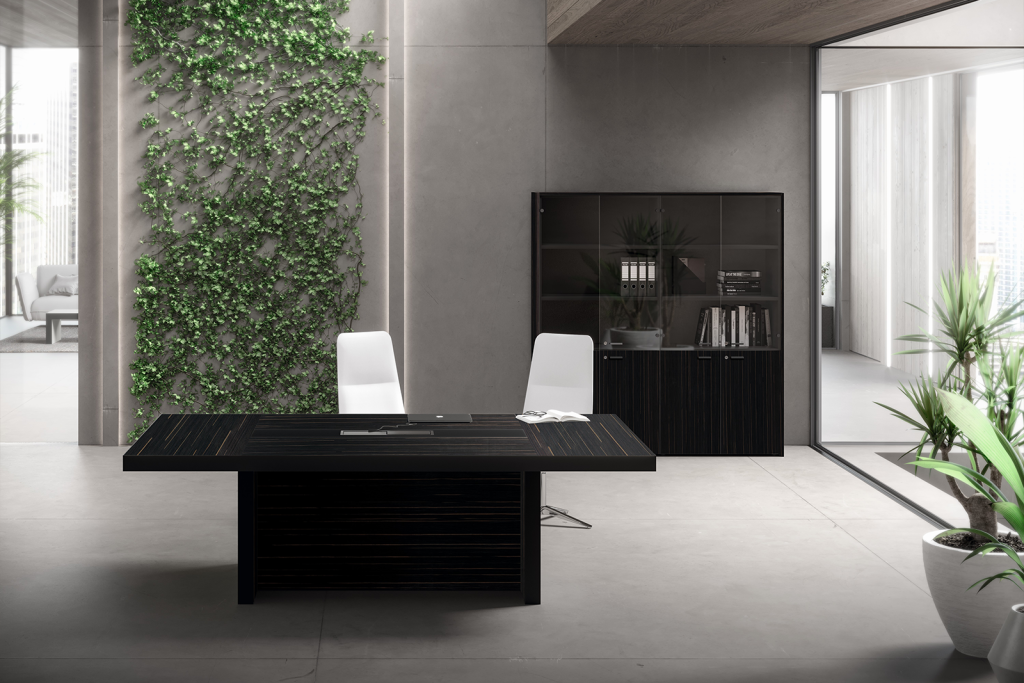 Αυτό το διευθυντικό γραφείο συνδυάζει άψογα την κομψότητα και τη λειτουργικότητα, δημιουργώντας έναν κομψό σύγχρονο επαγγελματικό χώρο εργασίας. Η εκτεταμένη επιφάνειά του παρέχει άφθονο χώρο για παραγωγικότητα, ενώ το ενσωματωμένο βοηθητικό ερμάριο αποθήκευσης κρατά τα απαραίτητα αρχεία οργανωμένα. Το ξύλινο φινίρισμα, οι καθαρές γραμμές και η στιβαρή κατασκευή ενισχύουν την εκλεπτυσμένη παρουσία του, καθιστώντας το ένα statement κομμάτι που εξισορροπεί το στυλ και την πρακτικότητα.