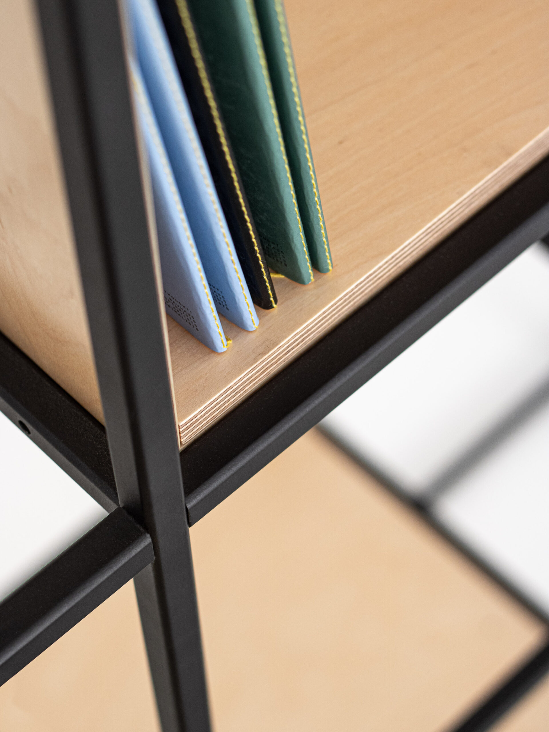 Personalise the product with powder coat finishes available in Black, White, Sage, Bronze and Aubergine. Accessories such as shelves, boxes, planters and acoustic panels in ply or MFC are also available.